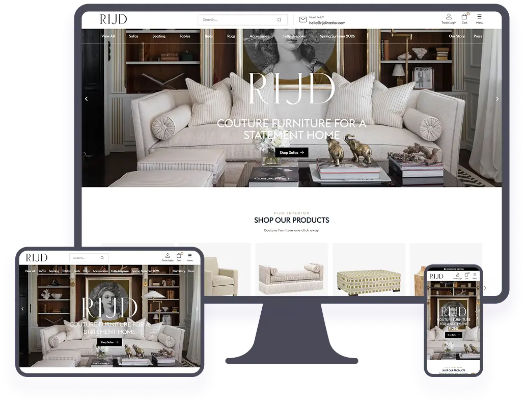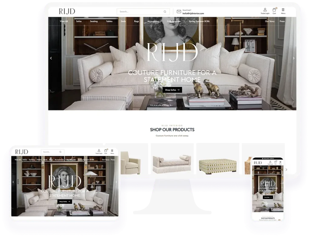 Rijd Interior är ett svenskt möbelvarumärke som gav oss uppdraget att utveckla en modern och visuellt tilltalande webbplats. Målet var att spegla deras designfilosofi och stärka varumärkets digitala närvaro på ett tydligt och genomtänkt sätt.
